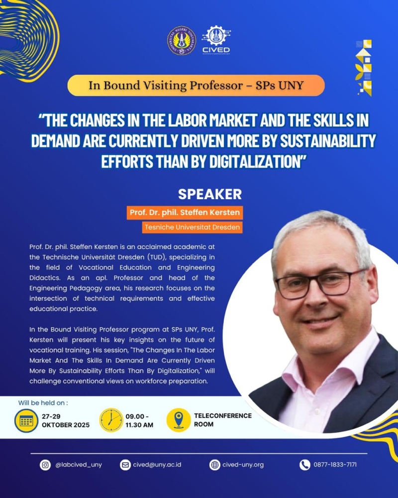 Program Visiting Professor merupakan bagian dari upaya Pusat Unggulan Iptek (PUI) GCHIP dalam memperkuat kolaborasi riset global dan pengembangan inovasi akademik. Program ini diselenggarakan melalui kemitraan strategis antara PUI GCHIP dengan Program Studi Pendidikan Teknologi dan Kejuruan Universitas Negeri Yogyakarta bersama mitra perguruan tinggi internasional.