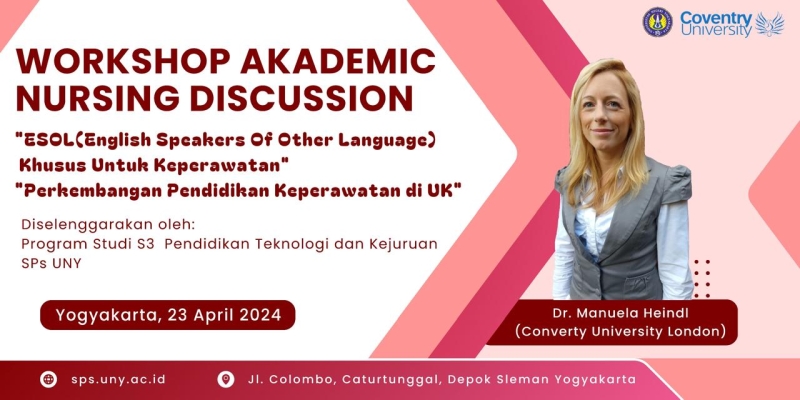 Workshop akademik ini menghadirkan Dr. Manuela Heinzel dari Coventry University yang membahas perkembangan pendidikan keperawatan di Inggris serta memperkuat diskusi internasional dalam bidang keperawatan.